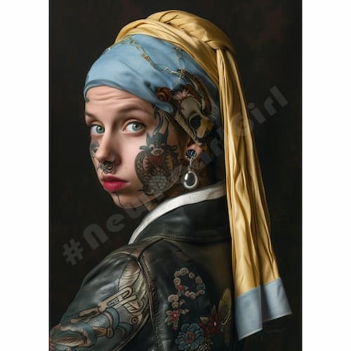Deze leuke postkaart is geïnspireerd op het Meisje met de Parel van de wereldberoemde schilder Johannes Vermeer uit Delft. Ontworpen en gemaakt door de eigenzinnige fotograaf Gustav, ook uit Delft. Wie zegt dat meisjes met tatoeages niet bij het team mogen? Ik in ieder geval niet! Wat een geweldig portret!